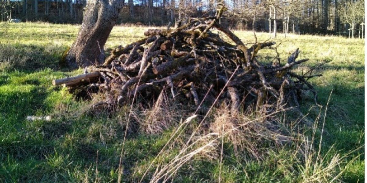 Bei der Pflege von Grünanlagen fällt immer wieder Astschnitt an. Der muss nicht im Häcksler verschwinden! Daraus können wertvolle Lebensräume gebaut werden, sei es als einfacher Haufen, Ersatz für eine Sichtschutzwand, eine Abgrenzungsmauer oder als gestalterisch anspruchsvolle Landart Skulptur.