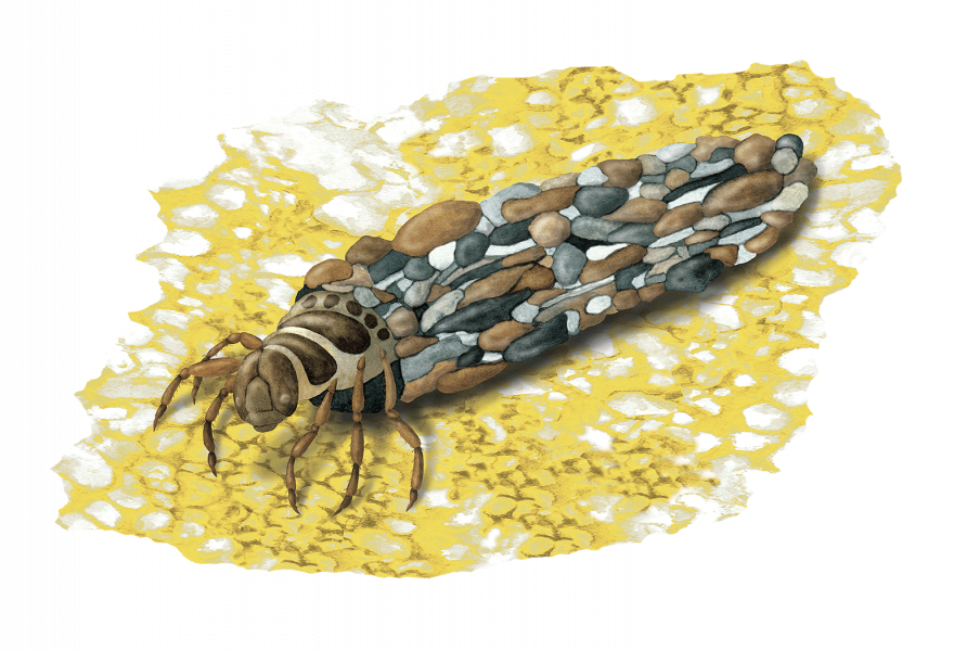 Du findest auch viele Insekten am und im Wasser: An kleinen Bachläufen, Weihern oder Flüssen leben einzigartige Lebewesen. Die Larven von einigen Insekten leben im Wasser, bis sie erwachsen sind und ausfliegen. Schau vorsichtig unter Steinen nach, vielleicht findest du die Larven der Stein- oder Köcherfliegen. Denke aber daran die Steine wieder genauso an ihren Platz zurückzulegen, um die Tiere so wenig wie möglich zu stören.